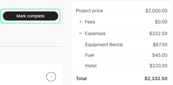 You will be able to view the sum of your expenses and project price. This is what you can expect to be paid once the project is completed.