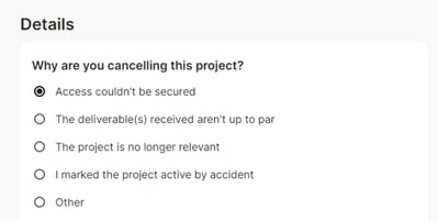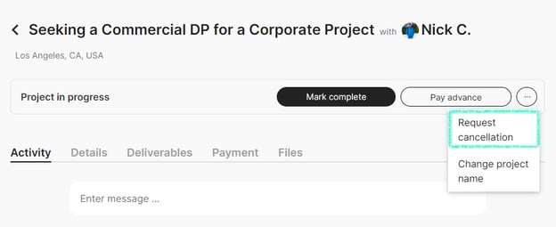 There may come a time where you need to cancel a project. This can only be instigated on the client’s end, meaning you will need to be the one to initiate a project cancellation.