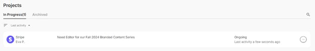Once you’ve completed all of your client's deliverables, mark your project as complete. To do this, find the relevant project from your Projects page. You can also search for the project using the magnifying glass icon if you know the project you’re searching for.