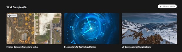 Verifying your work sample lets clients know exactly what services you've performed. To verify a work sample, click on the sample's thumbnail and then on the "Add verification method" button in the upper-right hand corner. You'll be prompted to select your verification method and provide the supporting information.