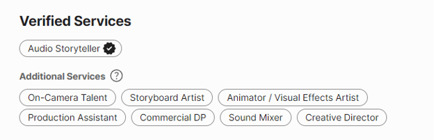 Unverified Services: These services are ones that you feel proficient in but do not yet have a verified work for. These become verified once you complete a project for that service on-platform or by uploading any verified project where you have completed that service.
