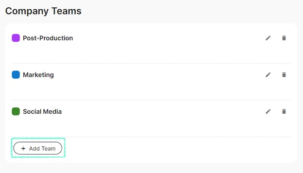 To create a new team, click Add Team. Enter the team name and description, then click the checkmark to confirm.