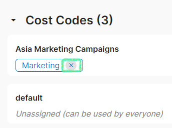 You can remove Teams from Cost and Story Codes by simply clicking on the "X" icon, which will remove the team from that particular code.