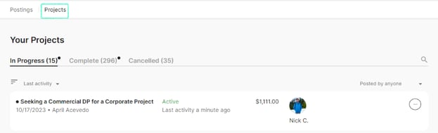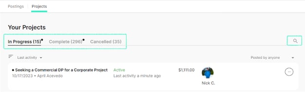 Archived projects are those that have either been Completed or Canceled. with each tab taking you to those respective projects. This allows you to track important project details such as ones that may be waiting to be marked complete or others that may have a creator message waiting for you.