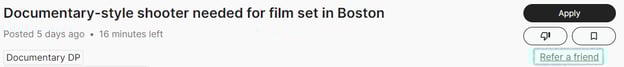Once you’re in the posting view, click Refer a Friend and fill out the creator’s Full Name and Email Address. This will send an email to the desired creator, allowing them to apply. They'll receive an email to sign up for Kaynuna and will be able to access the posting as soon as they've filled out their profile.