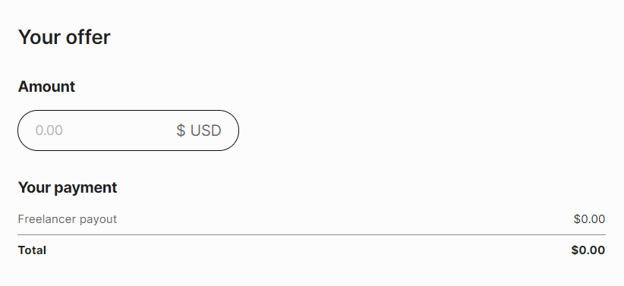The creative brief will look similar to the one when requesting a quote, but with one exception: you will be prompted to send an offer for your project, inputting a rate that you think is fair for what is being asked.