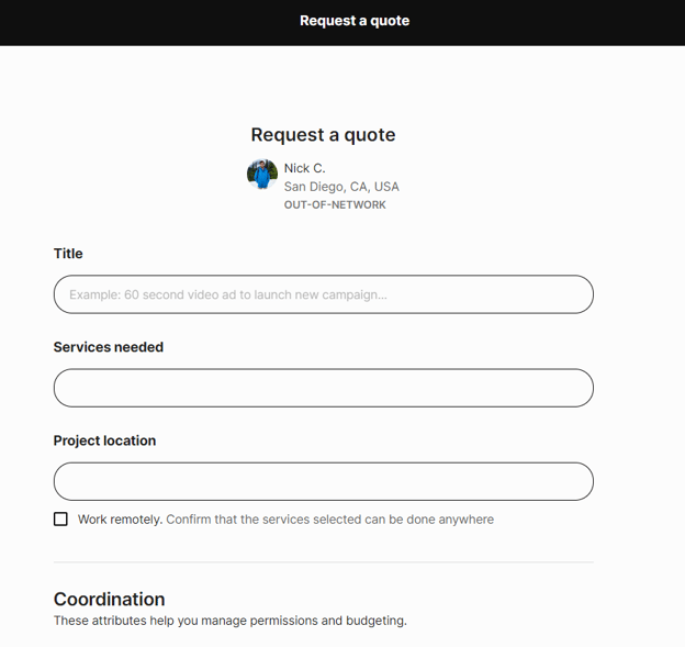 After selecting “Request a Quote,” you will be prompted to provide a creative brief to your desired freelancer similar to what you would provide when creating a project.