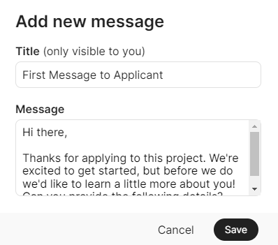 Here you will be able to add a new message where you can create, edit, and delete saved messages as you need, as well as give them titles so you can differentiate between them. Just enter the title, what you wish the message to say, and then hit Save.
