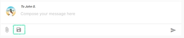 To insert a saved message into the message thread, just click the save icon and choose the one you want to use. The chosen message will automatically populate in the message thread, which you can pass along by hitting Send.