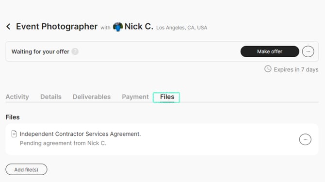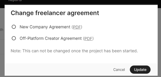 NOTE: You can only change the creator agreement prior to making an offer! You cannot change the agreement on "active" or "completed" projects. To adjust your creator agreement for a specific project, go to the Files tab.
