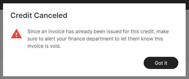 **IMPORTANT NOTE! When you cancel a credit this way, it’s VERY important to remind your finance department that the credit invoice is now VOID. They will be issued an invoice the moment your credit begins pending, so please notify them of ANY canceled credits request you make.**